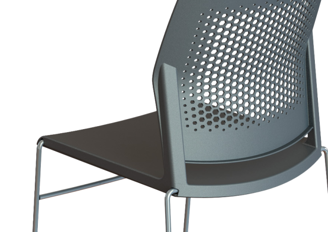 Assento e encosto em peças de polipropileno injetado com aditivos.