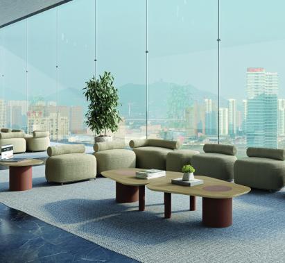 Desenhada com a proposta de conectar e aproximar as pessoas, a linha Near integra o mobiliário corporativo com módulos fluídos, orgânicos e estofados para potencializar sentimentos de pertencimento e bem-estar.