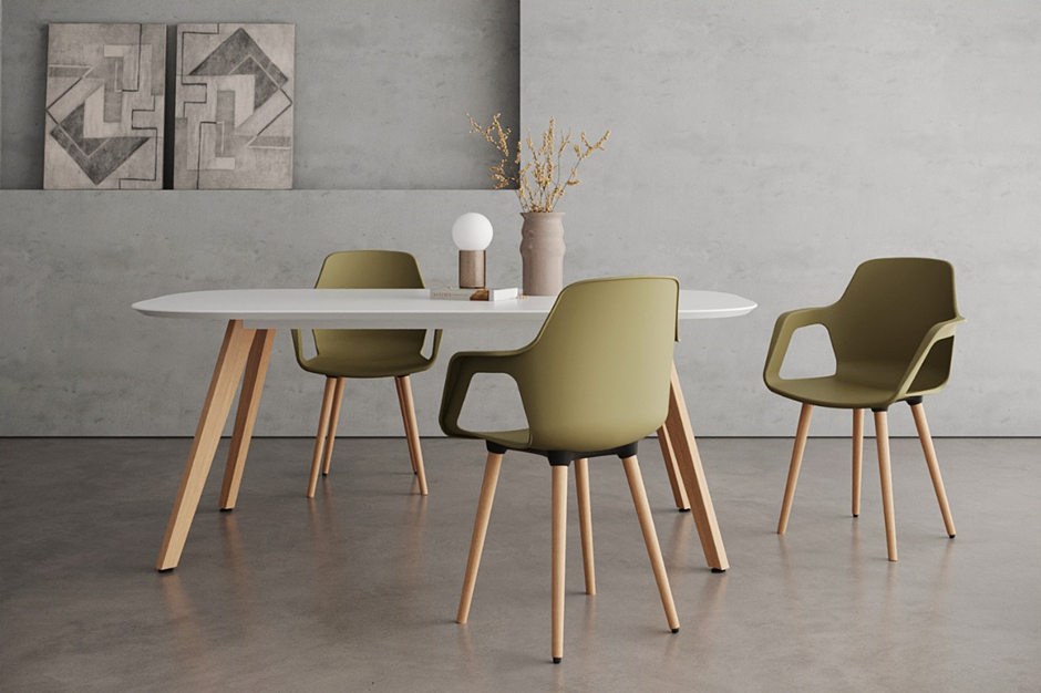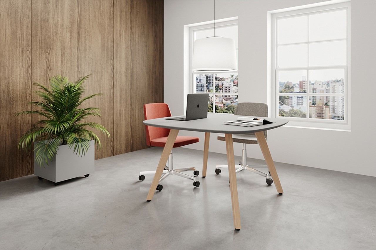 Por falar em linhas da Bortolini, existe outra linha que contempla o design orgânico de maneira ainda mais ampla: a Oblique. Projetada para quem gosta de vivenciar o escritório com uma abordagem mais moderna e informal, a linha Oblique traz o design orgânico no seu DNA com formas curvilíneas e pés em madeira natural.