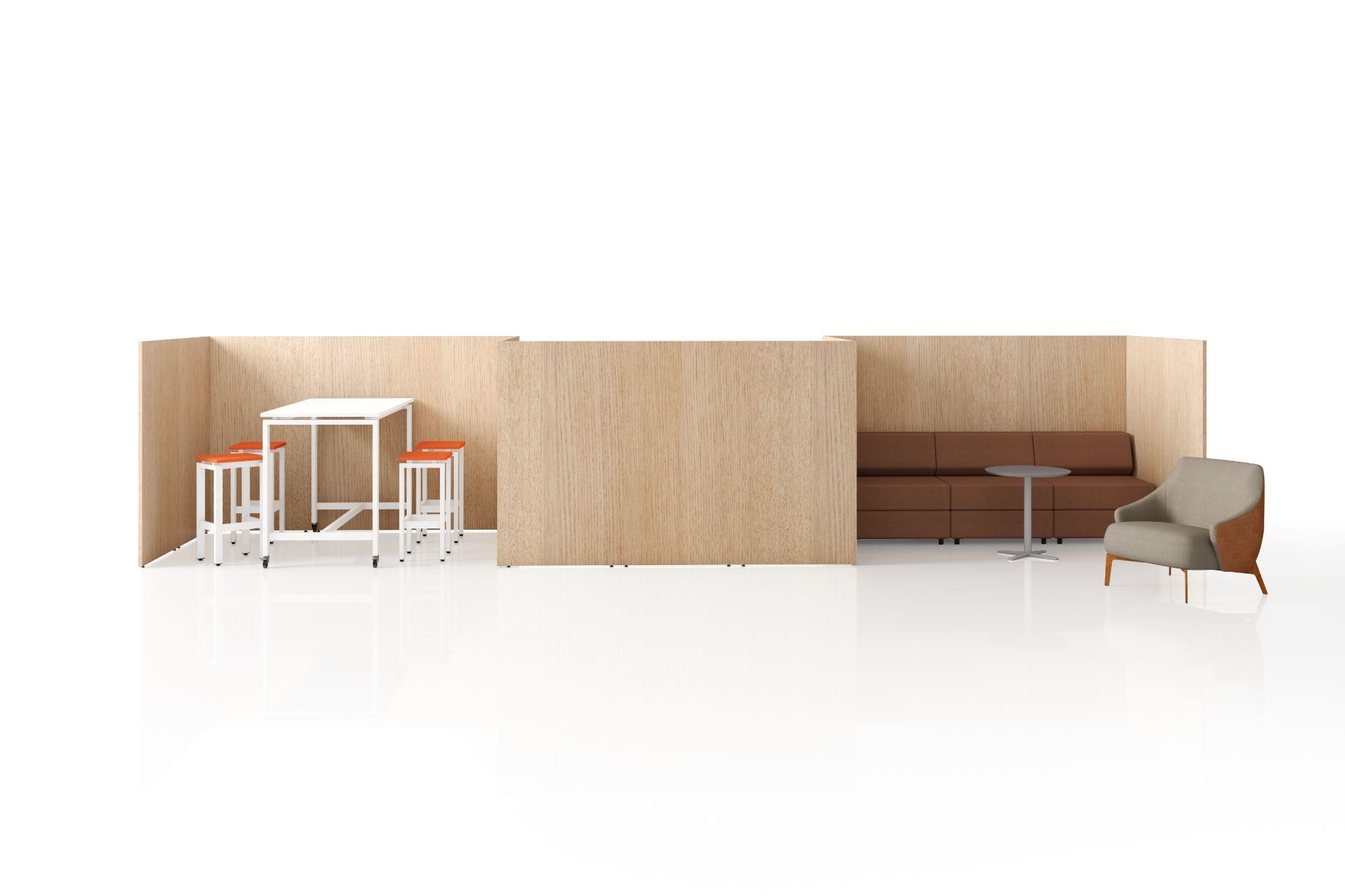 A linha de painéis 80mm é construída sobre uma estrutura de aço e pode ser revestida com placas de MDP BP ou tecido e conta com sistema de cabeamento por calhas escamoteáveis na altura do tampo ou rodapé. Também proporciona um perfeito conforto, além de possuir um sistema de conexão que permite a composição dos mais variados ambientes.