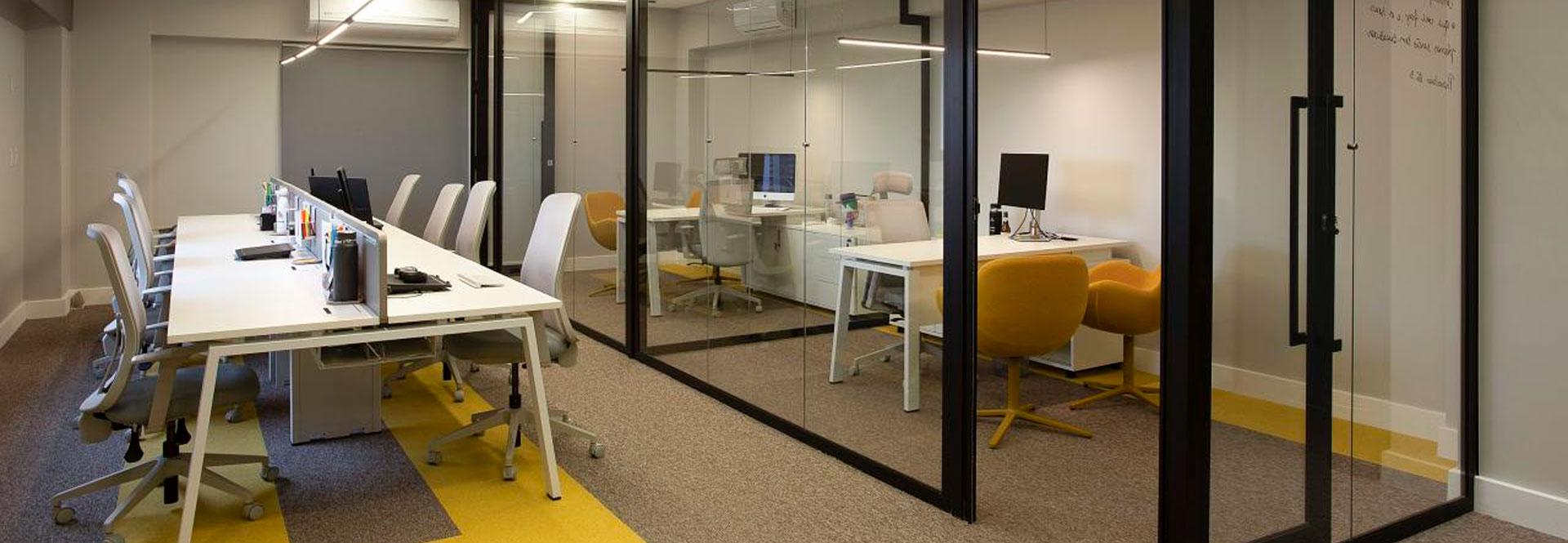 O toque de cor traz alegria e vivacidade ao espaço, refletindo o espírito do lugar e contribuindo para um ambiente de trabalho inspirador e aconchegante.