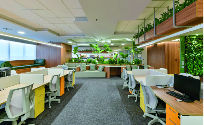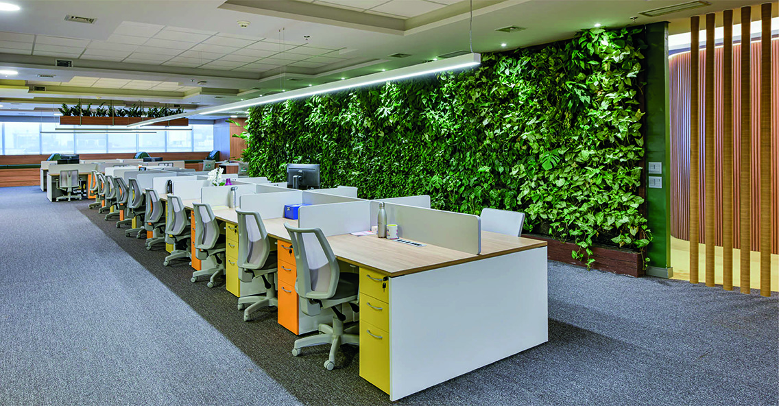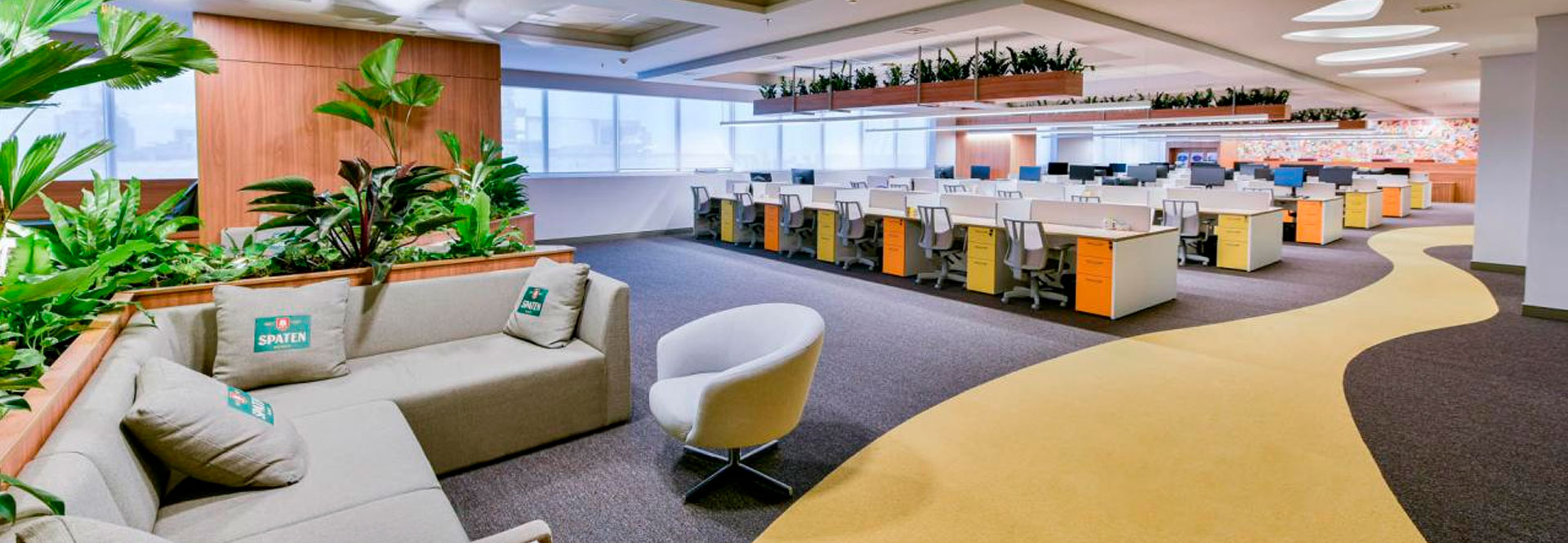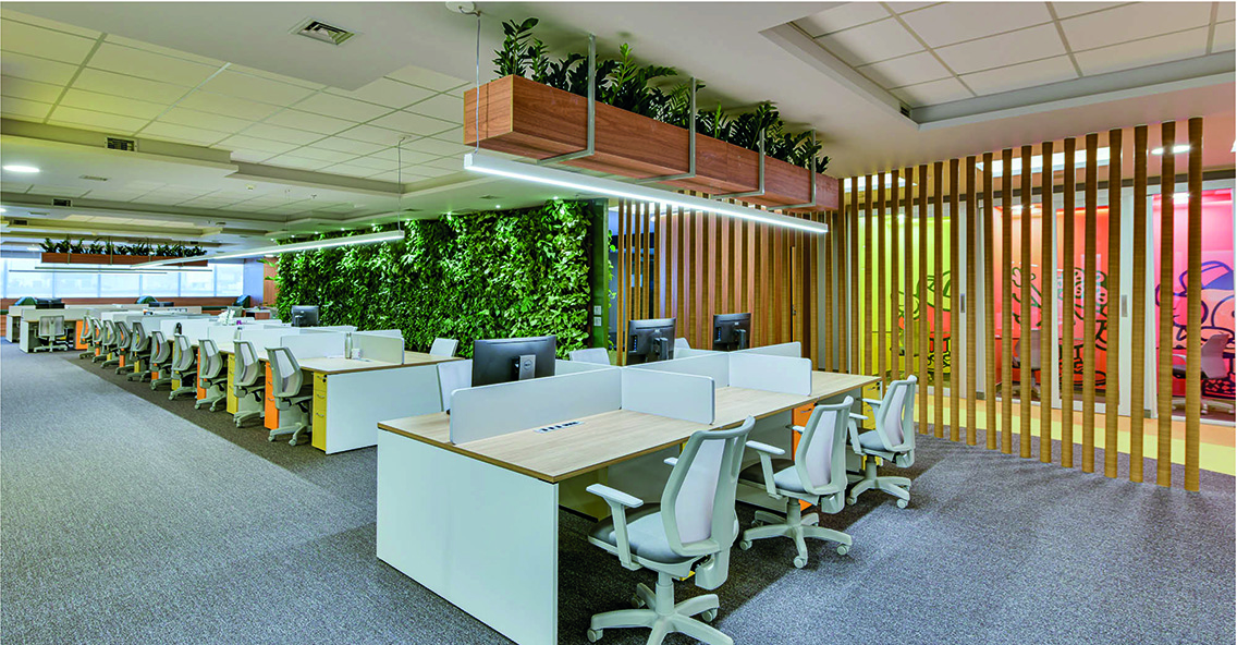 O projeto traz a biologia como completo vital para o ambiente, com a composição da vegetação e cores, distribuídas de forma harmônica. #SempreEngenharia #CasesDeSucesso #SomosSempre #Ambev #AloAmbev #AmbevBrasilia #AlemdosRotulos #ObrasCorporativas #ReformasdeEscritórios