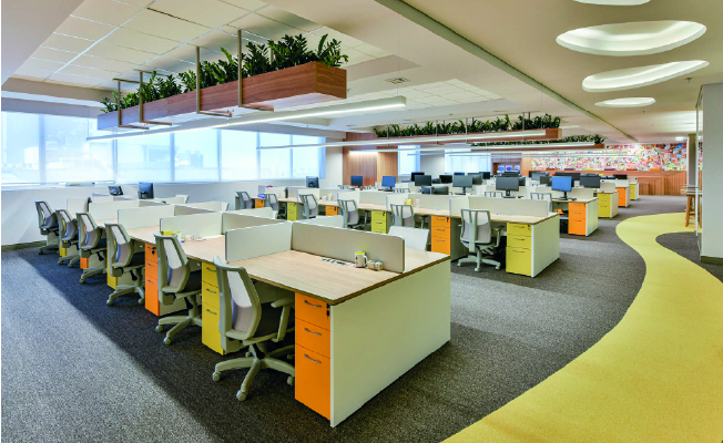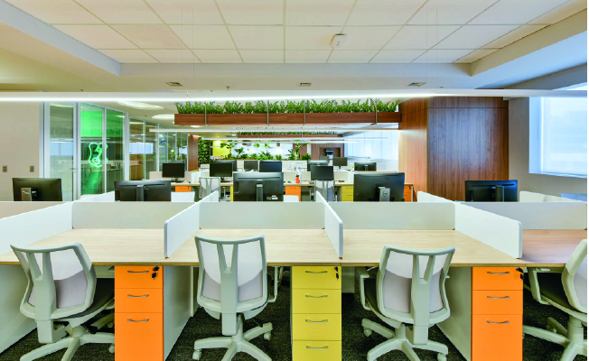 Nos 1.600m2 de área, o espaço recebeu estações de trabalho e mesas de reuniões da linha Keep, que privilegia a sustentabilidade, uma vez que os produtos são fabricados totalmente em MDP, certificado pela FSC. Os móveis contam com solução integrada de conectividade e são personalizáveis a partir da ampla cartela de cores oferecida.