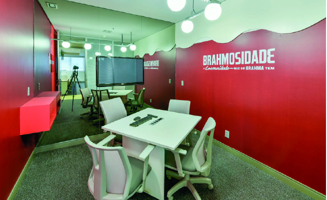 Alegria. Esta é a tônica do projeto da @zardoarquitetura, executado pela @SempreEngenharia, para o escritório da Ambev em Brasília, expressa através das cores. A rica comunicação visual é responsável por exaltar ainda mais a marca da empresa no espaço na capital federal.