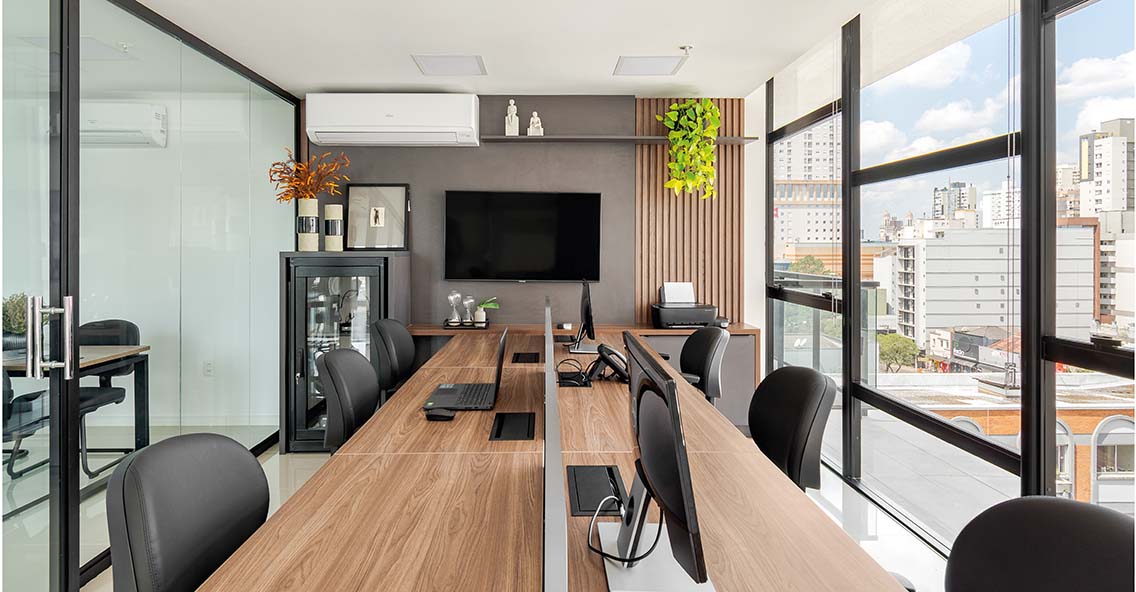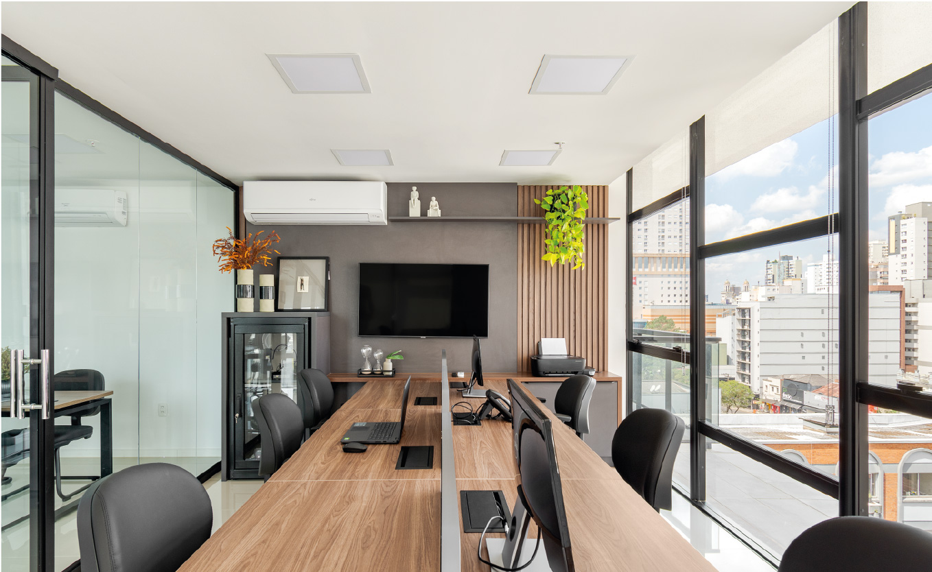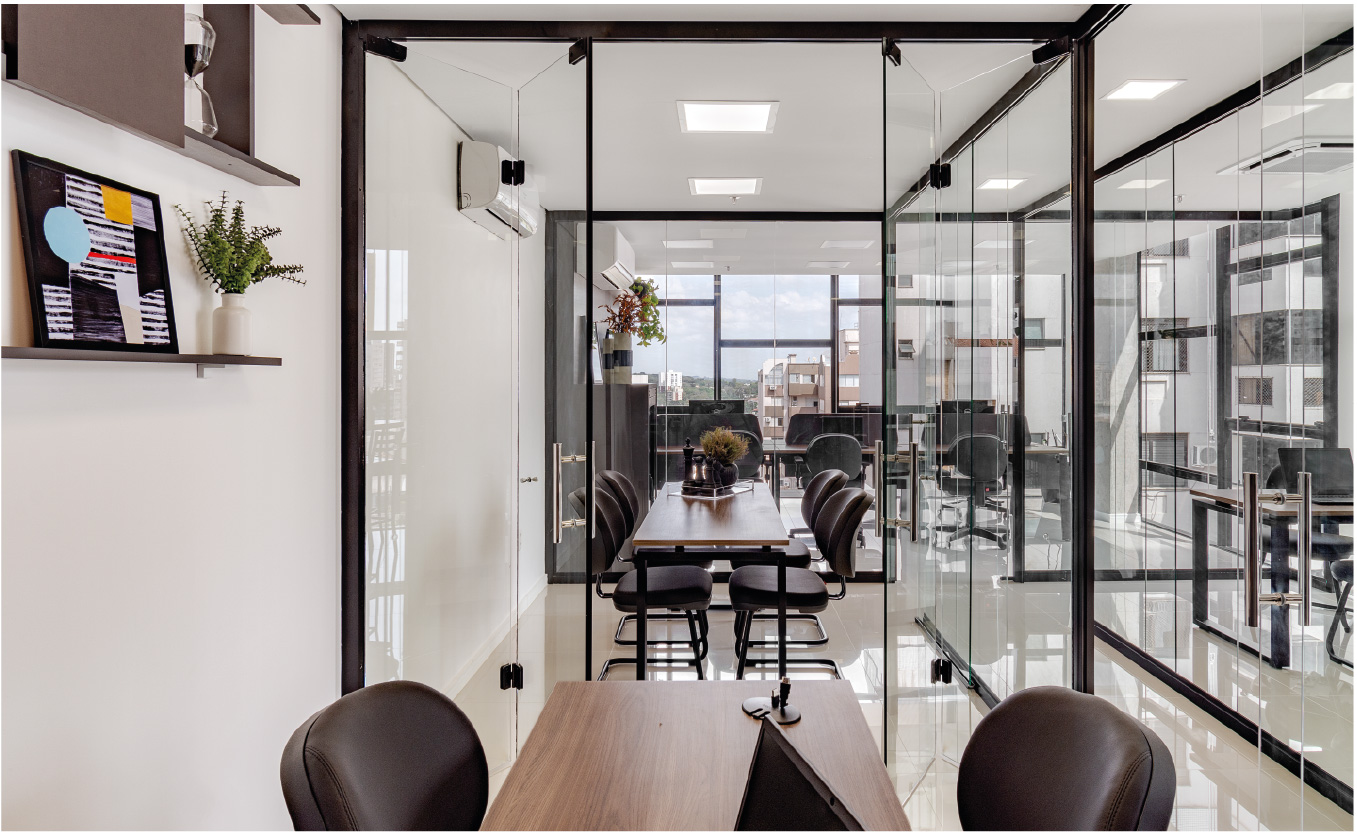 Com o objetivo de dar vida ao escritório corporativo de uma empresa do ramo de investimento, o escritório de arquitetura @Studioin.arq, sediado em Passo Fundo, no Rio Grande do Sul, projetou o espaço levando em consideração o perfil dos demais escritórios da empresa.