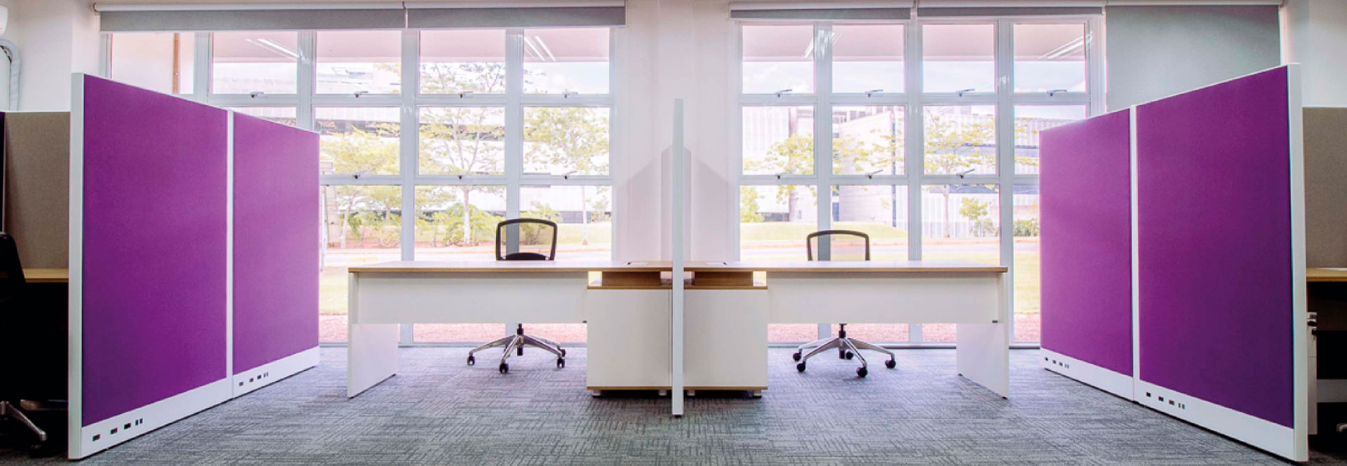 A escolha de divisórias foi uma solução inteligente e muito eficaz, uma vez que permite mudar o layout sempre que necessário, sem necessidade de obras, com muita rapidez e sem danificar estruturas.