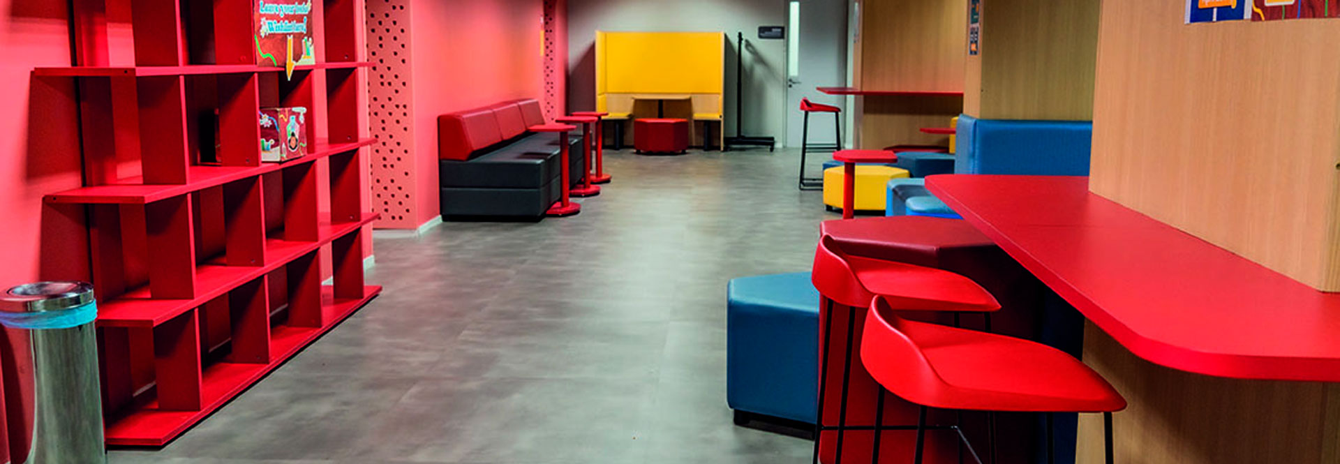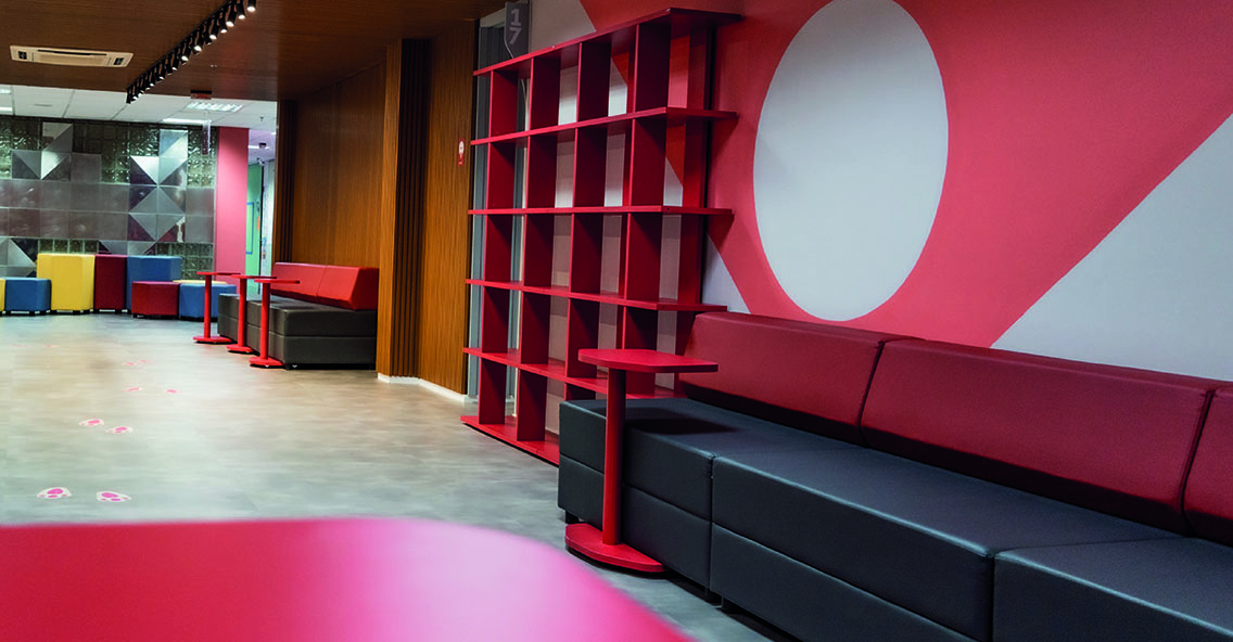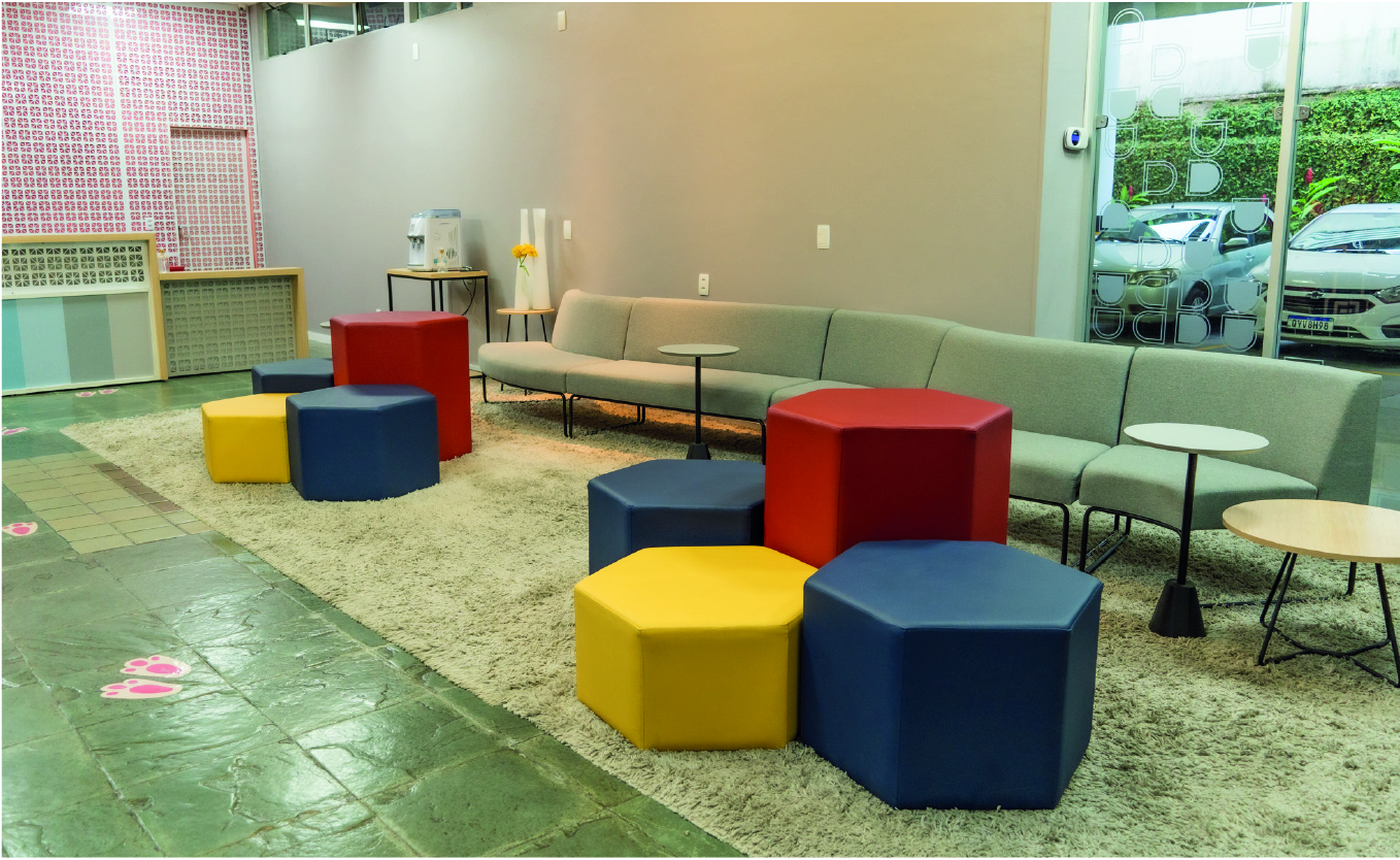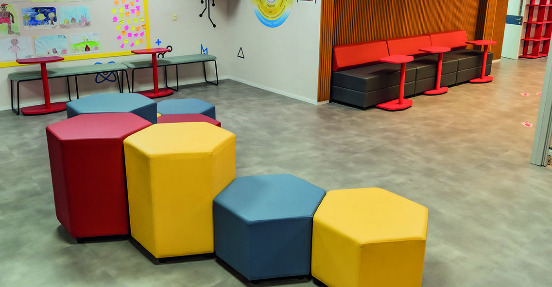 O mobiliário escolhido pela Kawa Arquitetura contemplou uma harmoniosa composição entre os pufes Favis e os estofados e mesinhas de aproximação da linha Max. Ao escolher as cores intensas os profissionais criaram uma atmosfera que estimula a criatividade, a concentração e a colaboração entre os alunos, refletindo a identidade e os valores da Maple Bear, fortalecendo a marca e transmitindo uma mensagem consistente aos alunos, educadores e colaboradores, com impacto significativo no bem-estar dos estudantes e da equipe.