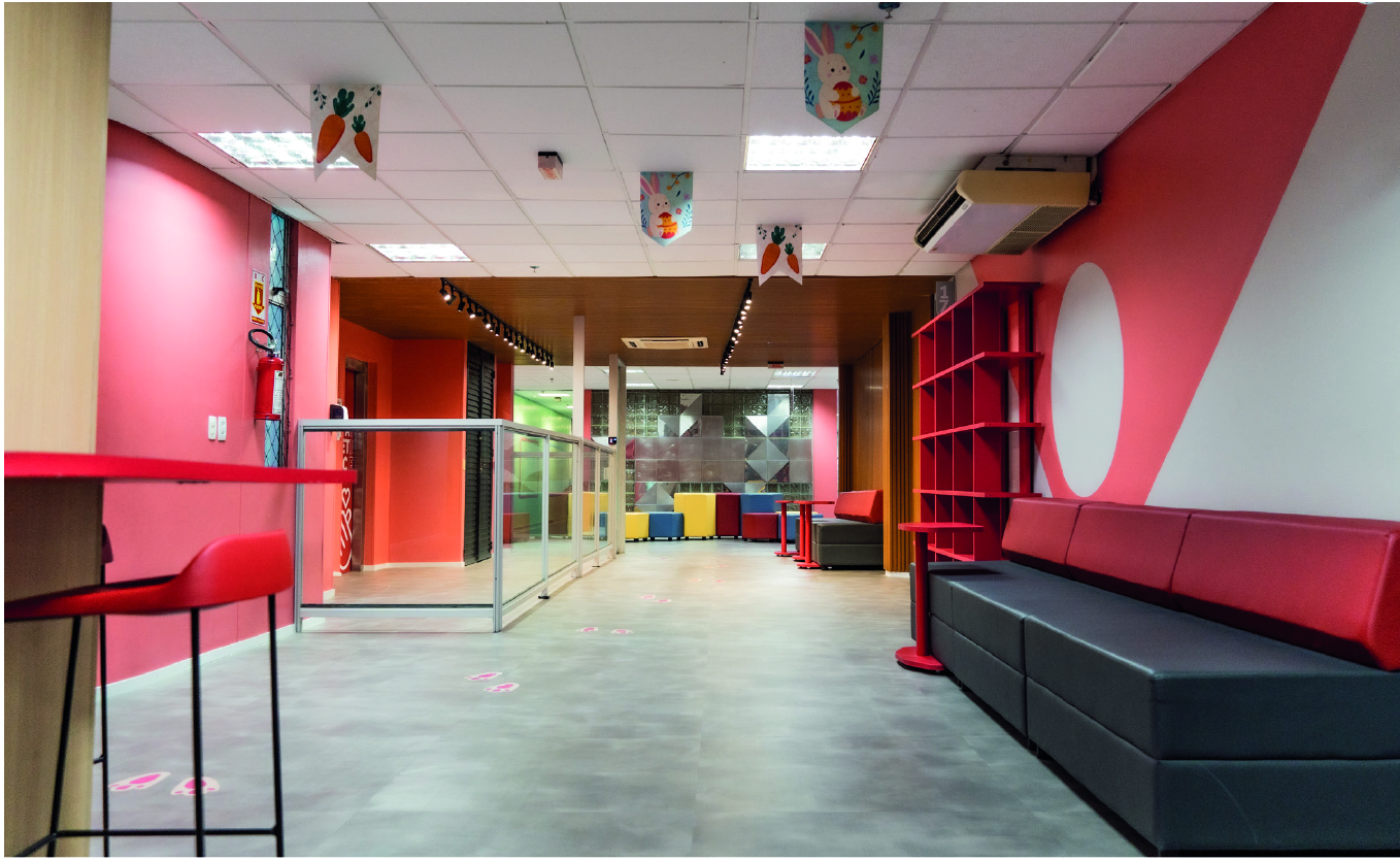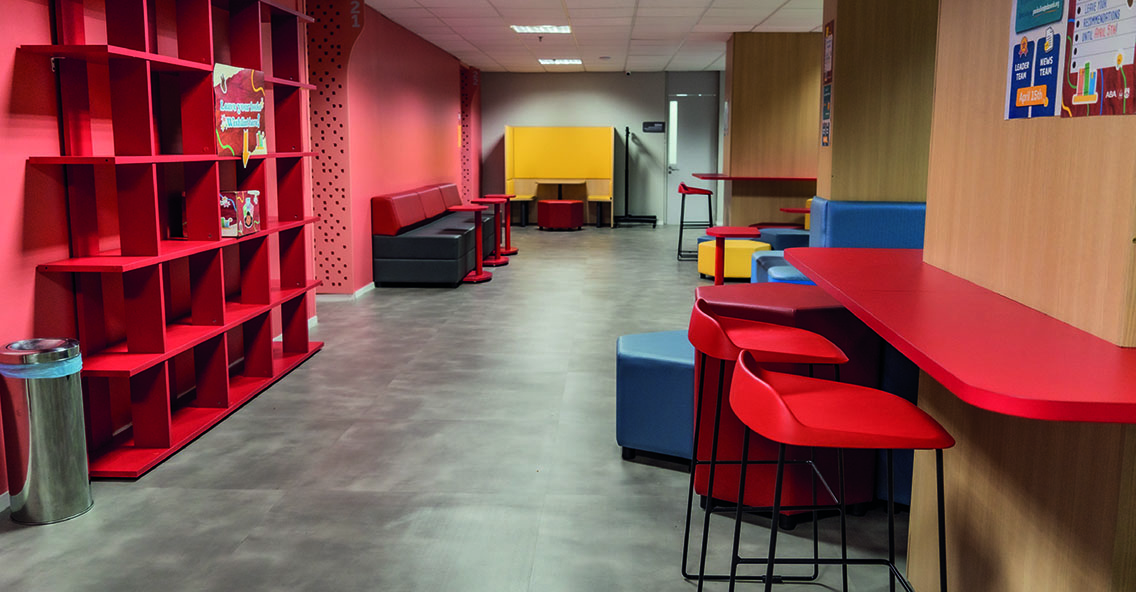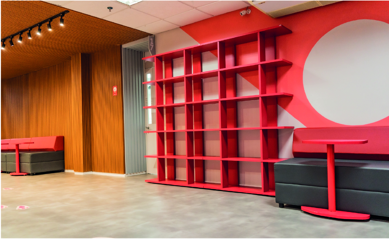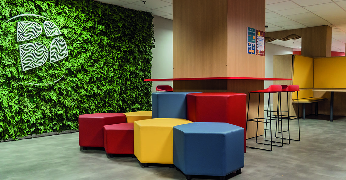 O mobiliário escolhido pela Kawa Arquitetura contemplou uma harmoniosa composição entre os pufes Favis e os estofados e mesinhas de aproximação da linha Max. Ao escolher as cores intensas os profissionais criaram uma atmosfera que estimula a criatividade, a concentração e a colaboração entre os alunos, refletindo a identidade e os valores da Maple Bear, fortalecendo a marca e transmitindo uma mensagem consistente aos alunos, educadores e colaboradores, com impacto significativo no bem-estar dos estudantes e da equipe.
