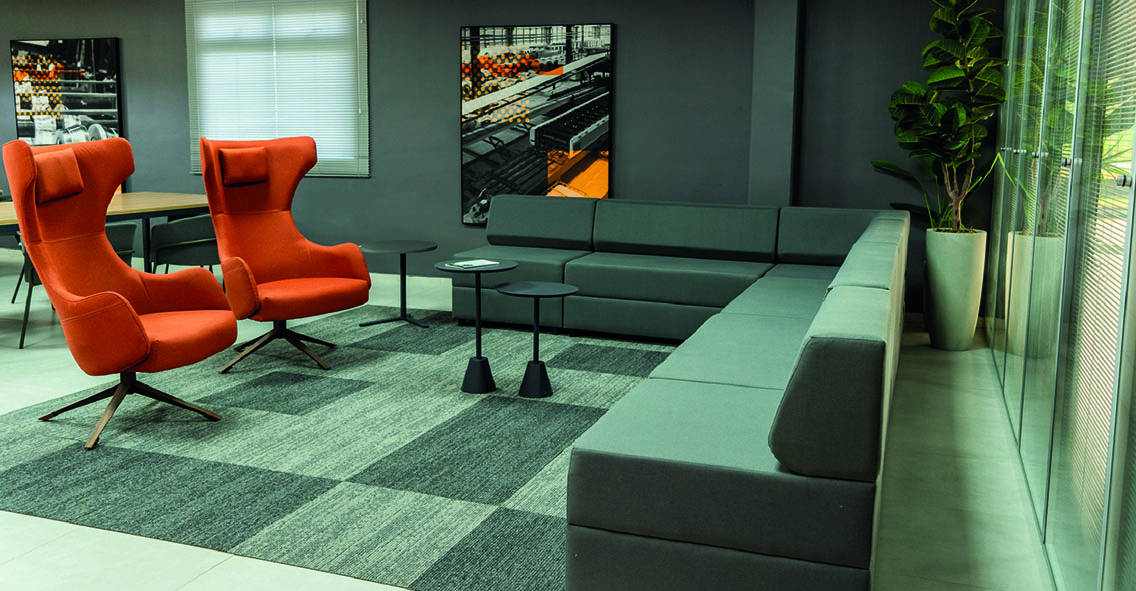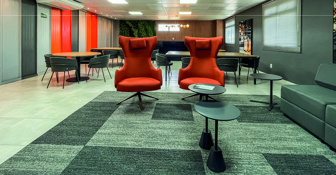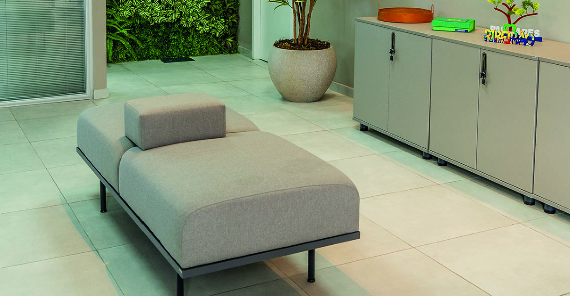 Alguns espaços de descompressão e salas de espera receberam os estofados da linha Max, revestidos com tecidos de alta qualidade e com estruturas que garantem a solidez e a durabilidade, inclusive estética, do produto. Outros, foram mobiliários com a linha Otium, que nasceu para levar o equilíbrio entre trabalho e lazer, inspirado no Ócio Criativo de Domenico De Mais. Sua modularidade é encantadora e convida a imaginação a se manifestar, pois a união entre design tridimensional e flutuação permite observar tudo por novas perspectivas.