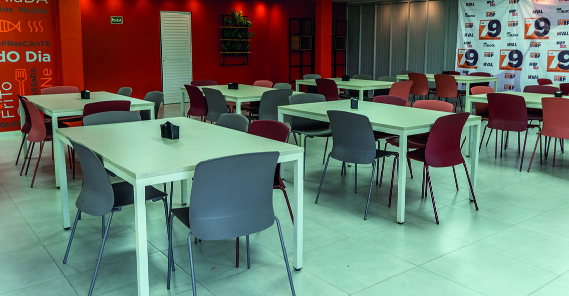 A qualidade do projeto e do mobiliário ficam evidentes nas salas de reuniões, estações de trabalho e mesas individuais, com predominância do amadeirado e com alguns pontos de cor, que juntos trazem segurança e alegria para os espaços.