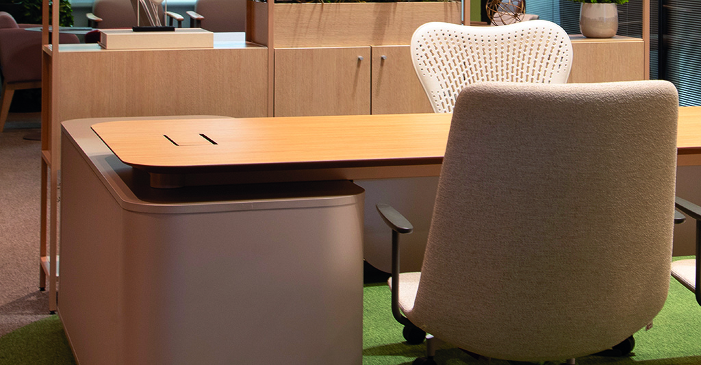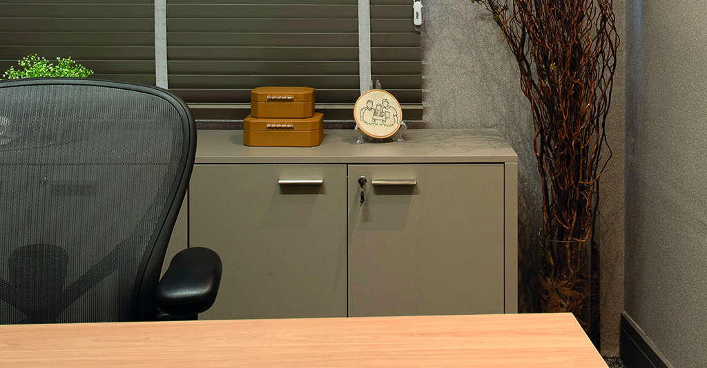 O ambiente apresenta soluções que acompanham as transformações do trabalho contemporâneo. Entre os destaques estão as linhas Pluri e Keep, mais tradicionais, além da Aluma, em formato orgânico e atrativo que reforça a constante atualização e a flexibilidade do mobiliário feito para durar, mantendo os ambientes organizados para espaços colaborativos. Os armários da linha Classic complementam o projeto ao garantir a organização dos ambientes e a segurança dos documentos, unindo praticidade, resistência e estética atemporal.