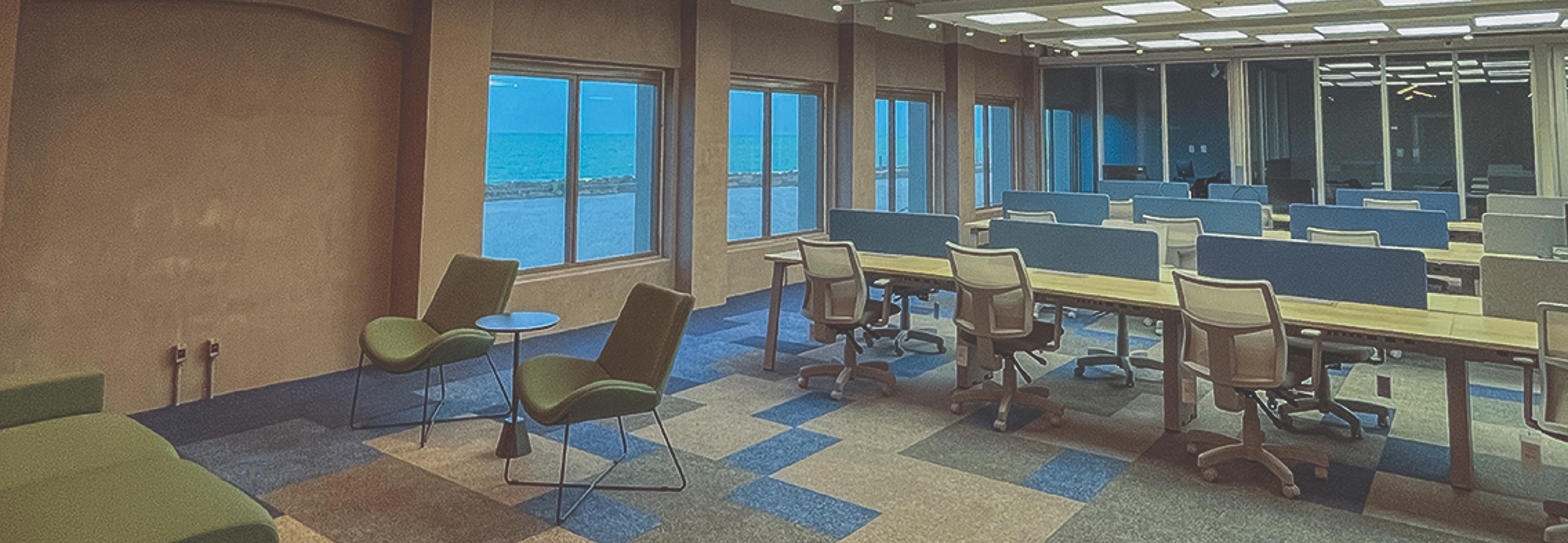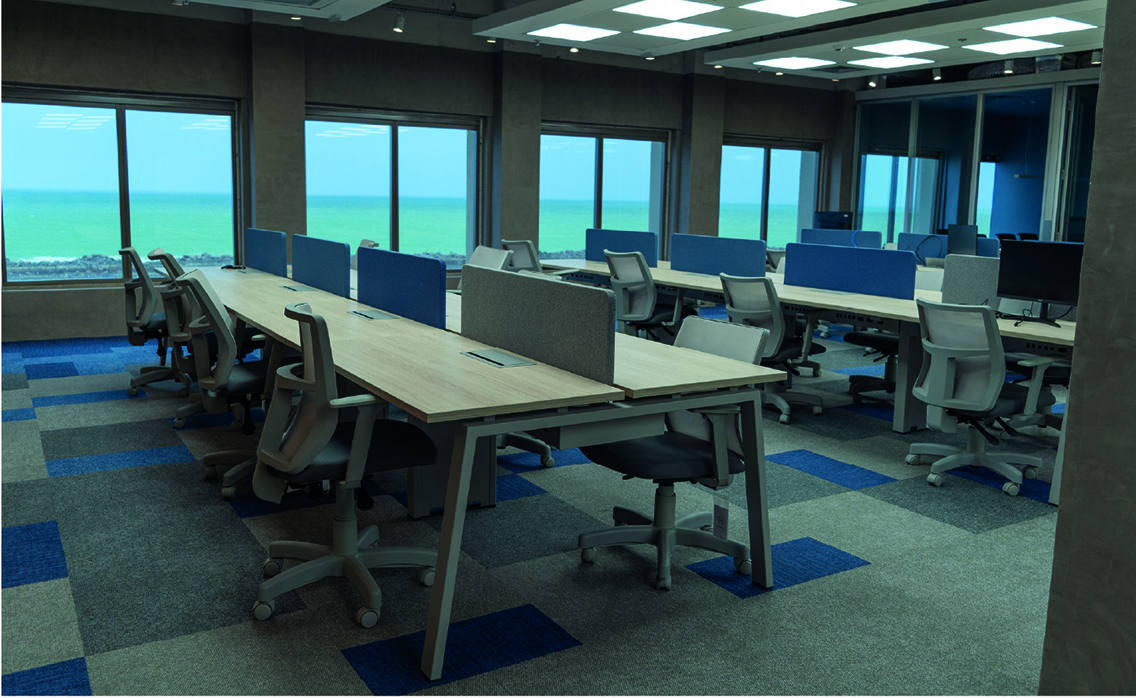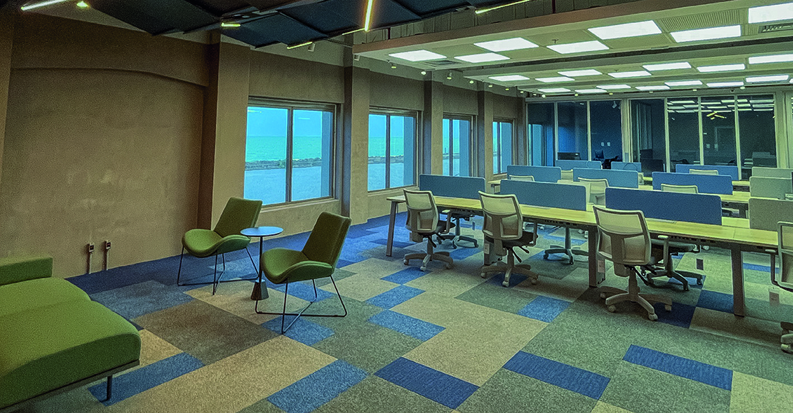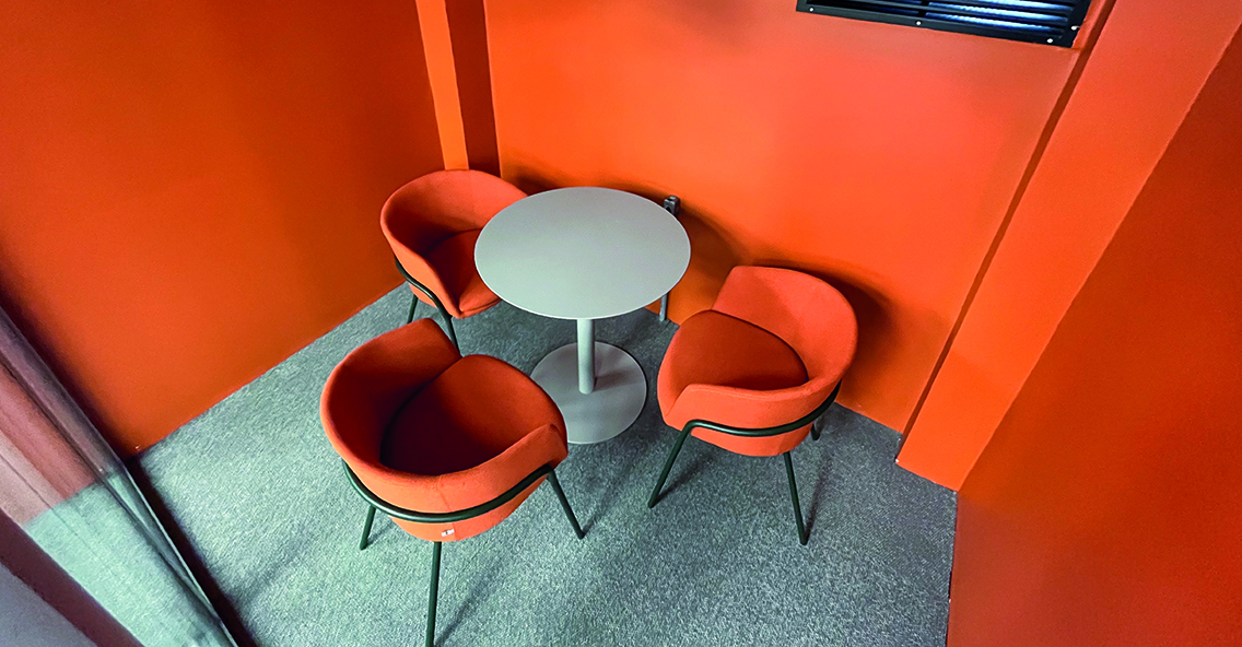 O novo espaço foi cuidadosamente projetado para incluir ambientes dedicados à descontração, com áreas alternativas para trabalho em equipe e locais com móveis customizados.
