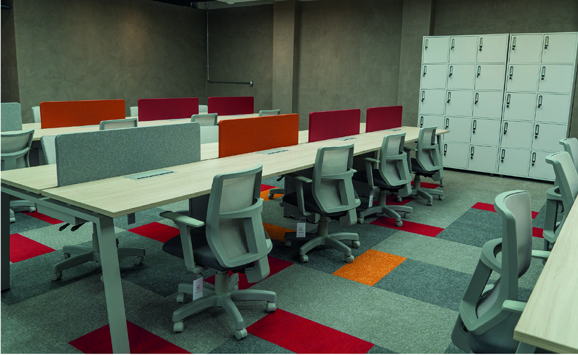 Para mobiliar o espaço, a Pina Office Design escolheu a Bortolini Móveis Corporativos, com estações de trabalho e mesas individuais, da linha Puri. Essa linha entrega elegância, ergonomia e atemporalidade, além de permitir a expansão dos espaços, conforme a necessidade do empresa. Para organizar o escritório, os lockers da linha order foram a opção perfeita para compor o ambiente.