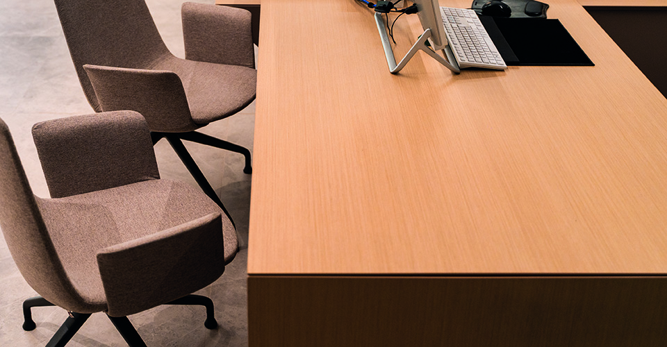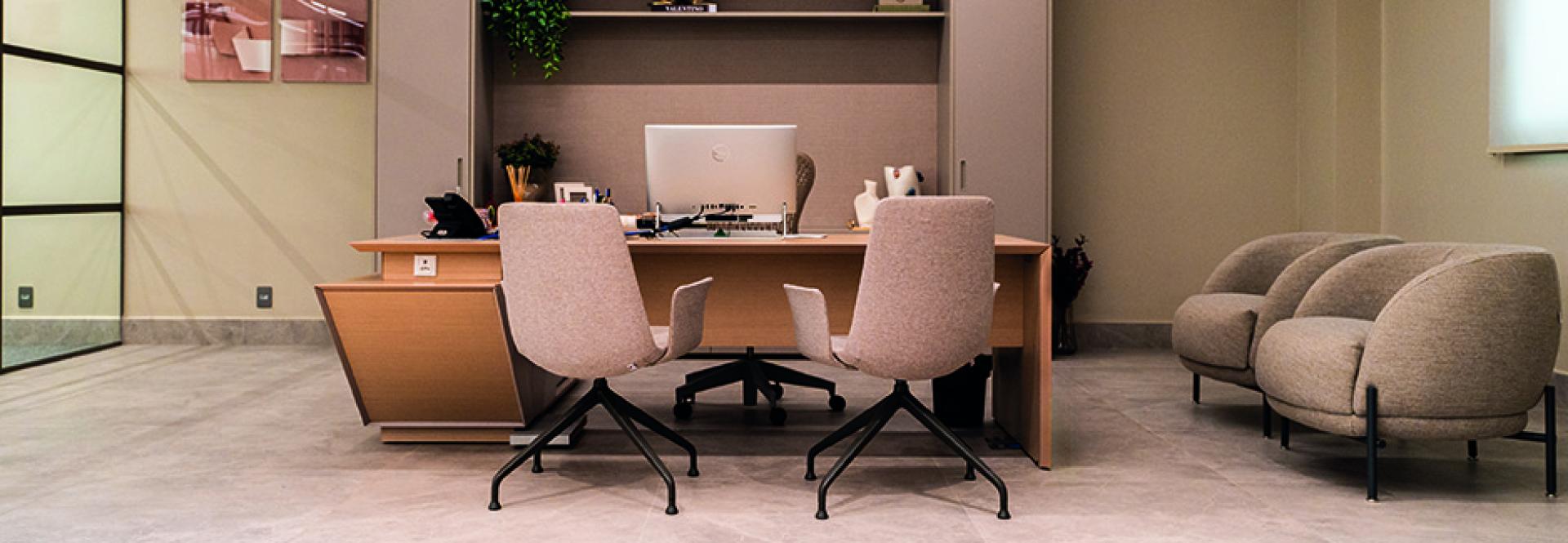 Para as reuniões do dia a dia, a mesa da linha Pluri oferece versatilidade e leveza visual, enquanto a mesa executiva Triarii entrega design autoral marcante que transforma qualquer espaço.