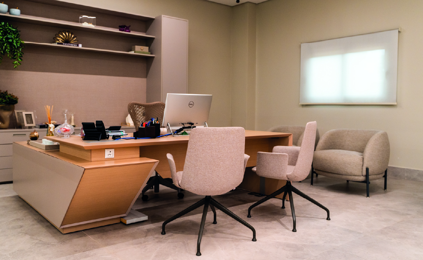 A Neomóbile, Representante oficial da Bortolini no Mato Grosso, assinou o projeto com a curadoria da arquiteta Caroline Bocchi, que teve como foco traduzir os valores da empresa em cada detalhe, desde os ambientes executivos até os espaços de convivência coletiva. O resultado é um projeto contemporâneo, bem planejado e altamente funcional, que reflete a identidade sólida e visionária da Suprema Máquinas.