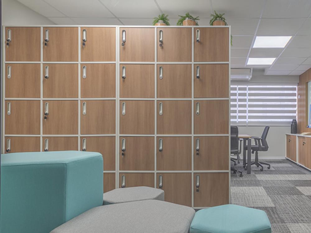 Os lockers da linha Order permitem personalização com inúmeras combinações de modelos e cores, configurando-se num belo elemento de organização e decoração do ambiente.