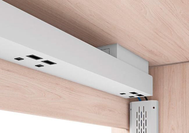 Em sua configuração é possível incluir soluções de conectividade como a régua tona ou caixa de tomadas, ambas com tomadas instaladas e espera para cabos de rede, além de poder ser escolhidas já com cabo de conectividade, ou seja, basta conectar na tomada e a sua mesa estará eletrificada e pronta para ser utilizada.