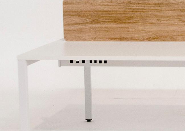 A linha é composta por mesas de trabalho e de reunião, plataformas lineares, painéis frontais e divisores e recebem calhas para conectividade, caixas e suportes para as instalações de tomadas.