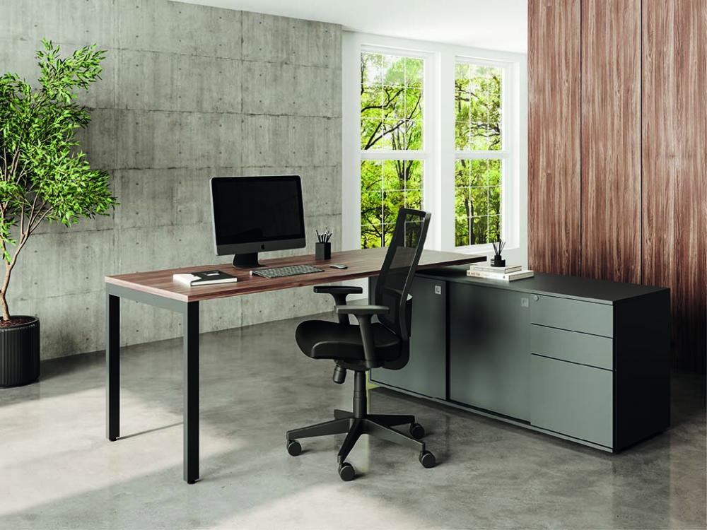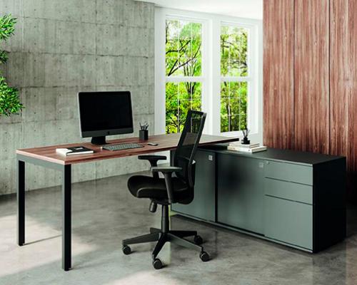Com diferentes opções para atender a diferentes projetos, a linha disponibiliza as mesas credenza, mesas em L, com armário e gaveteiro para armazenamento de documentos ou objetos do usuário, de forma a manter o ambiente organizado e a documentação segura.