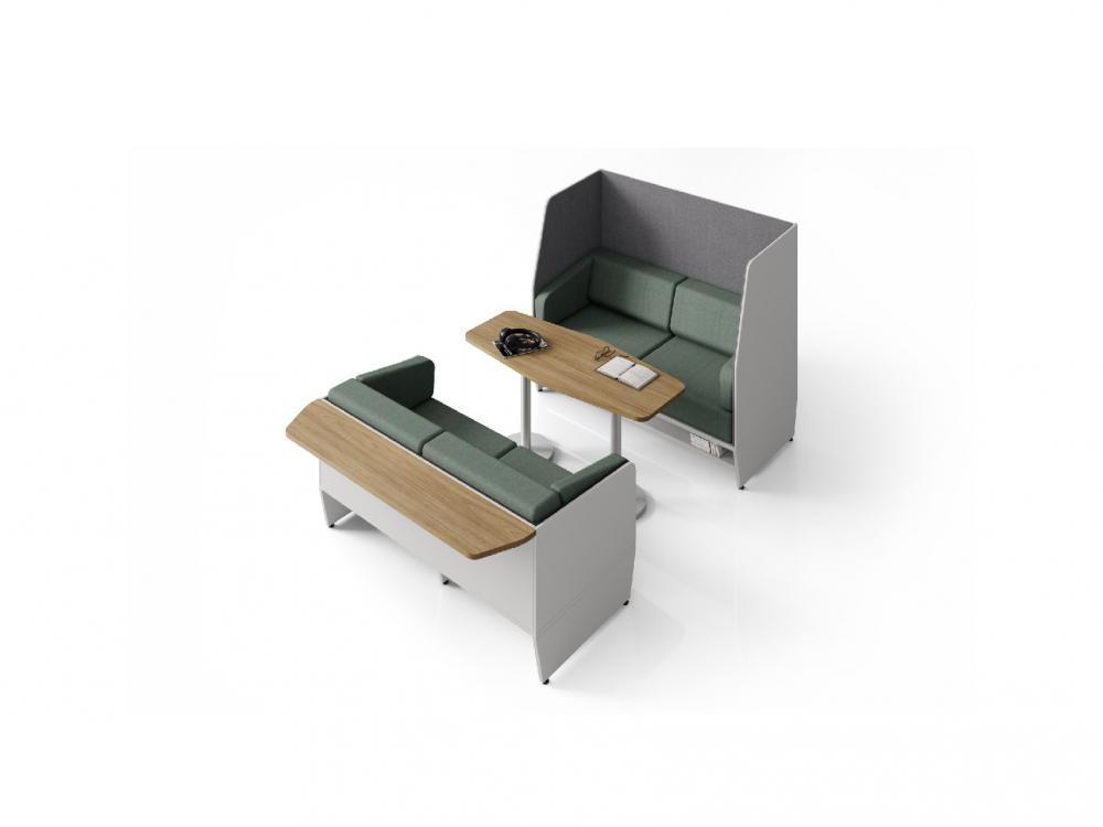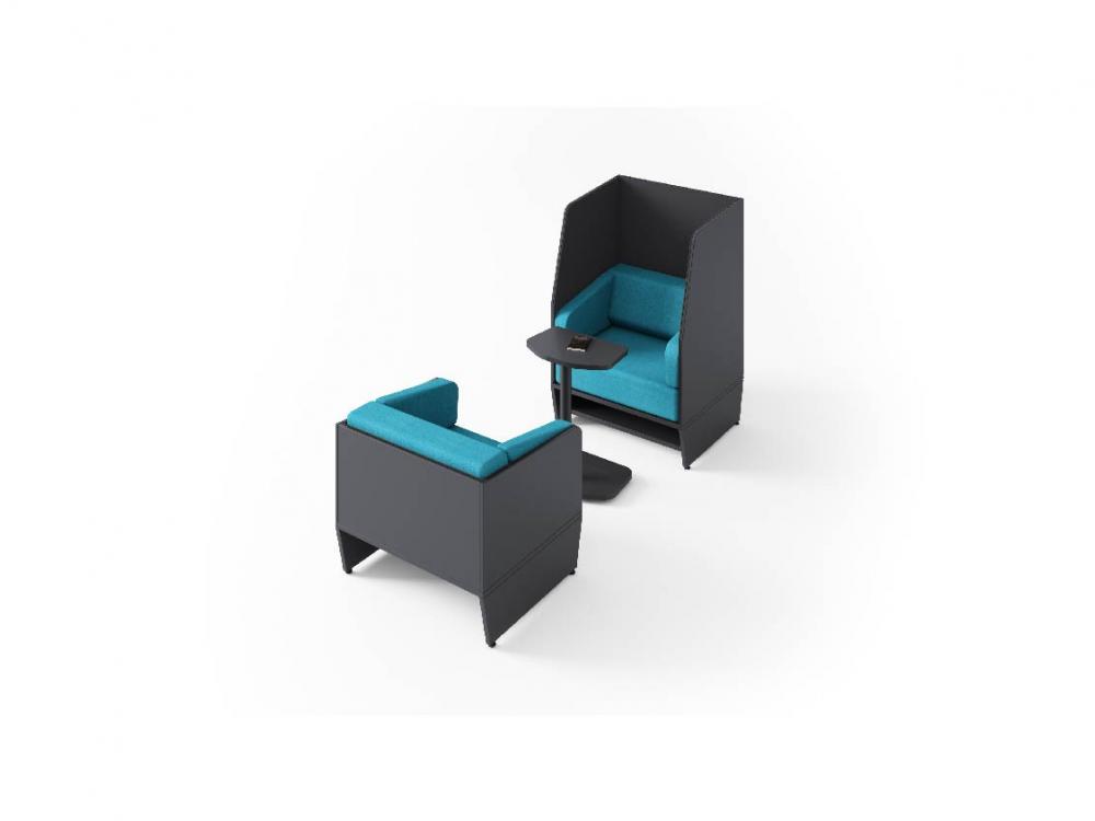Envolto em chapas de MDP o sofá e poltrona da linha Max foram criados para aguentar o dia a dia do uso corporativo de alto tráfego.